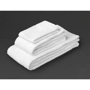 Essential Carnival bath towels provide your guests with luxurious softness, at a price that will suit your budget. Constructed from reassuringly soft, plain white 100% cotton, these towels are quick-drying and favoured by hotel guests. With a durable construction, capable of withstanding constant laundering, this bath towel will continue to perform after every wash. Featuring decorative header bars at each end for an eye-catching style, also available in face cloth and hand towel sizes.