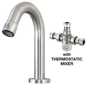 AquaTechnix TX-i-200 Electronic Sensor Tap. Fixed spout H:200mm. Includes microvalve, battery pack, PEX lined WRAS-approved water hose & WNT-MIX thermostatic mixer.
