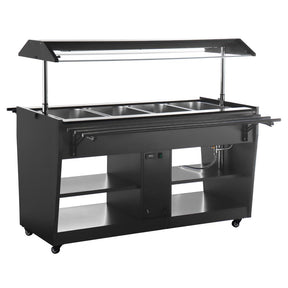 Serve large quantities with ease using the Buffalo heated buffet bar. Designed for high-volume self or assisted service setups, these units offer a generous 4 x 1/1 GN capacity - perfect for busy canteens, buffets and event catering. The gentle wet-heat bain marie heating system maintains consistent serving temperatures, whilst not overheating or burning food to preserve quality and taste.