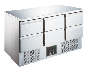 The Sterling Pro SPU303-6D refrigerated counter is designed to keep your fresh ingredients safely chilled without costing the earth. This 6-drawer design offers a huge amount of internal chilled storage space plus the benefit of over 1350mm of prep space on top.