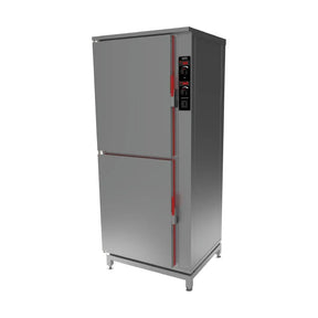 Designed specifically for the cooking and regeneration of fresh, chilled or frozen bulk foods. These ovens can also be used for the regeneration of chilled pre-plated meals. The unique multi-fan air circulation system allows fast and even heat distribution throughout. Designed for GN1/1 type pans, the CR20L is Landscape configuration with twenty shelf positions (six grid shelves supplied as standard.) The ovens have a bright polished stainless steel interior, satin finished outer panels, complete with a heavy duty hinged door and slam shut door catch.