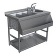 Finally, on top, the cocktail station includes fully stainless steel construction for durability and ease of cleaning.
