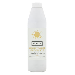 Velvety smooth and sweet, Simply's luxury white chocolate topping sauce is the perfect addition to many desserts. Packaged in a large 1kg squeezy bottle, this beloved flavour will remind you of your childhood through the delicious sweetness. Rich and luxurious, you'll love this sauce drizzled over everything. Simply luxury white chocolate topping sauce is gluten-free and carries the Vegetarian Society Vegan certification.