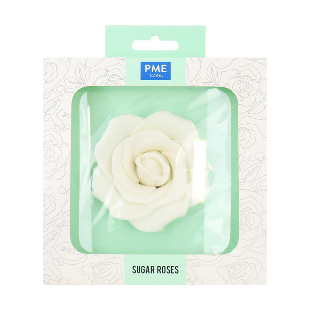 Elevate your baked creations with PME's delicately handcrafted 190mm white sugar rose. This pre-made rose not only saves you a significant amount of time and effort over making it by hand, but also tastes great too. Intricately patterned and delicately shaped, the rose can be coloured with lustre sprays, powder colours and airbrush colours to create stunning effects. It comes supplied in a beautifully packaged, decorative box.