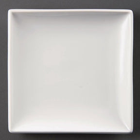 An appealing, pure white 11.5" square plate from Olympia, designed to provide a great value and hardwearing porcelain crockery solution for busy hotels, canteens, casual dining restaurants and cafes. Strengthened rolled edges ensure the plate is chip resistant and the fully vitrified body gives great glaze durability, making it ideal to withstand the rigours of the professional catering environment. The plate is stackable, helping maximise storage space, and oven, microwave, dishwasher and freezer proof.